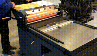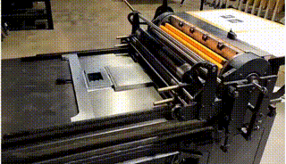 按下壓力分離機(jī)構(gòu)手柄,壓印滾筒在轉(zhuǎn)動過程中不與印版施加壓力。 |