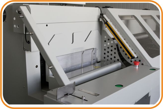 紅外安全裝置 放入書芯后,操作人手部離開檢測(cè)區(qū)即可自動(dòng)運(yùn)行,確保書芯 |