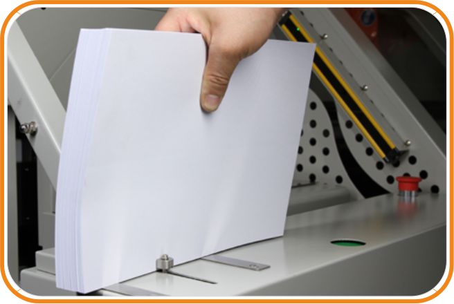 書芯放入夾書器,即可自動(dòng)檢測(cè)書芯厚度,并實(shí)時(shí)完成所有工位的定位調(diào)整,無需人工干預(yù)。操作區(qū)設(shè)有外紅檢測(cè)安全裝置。